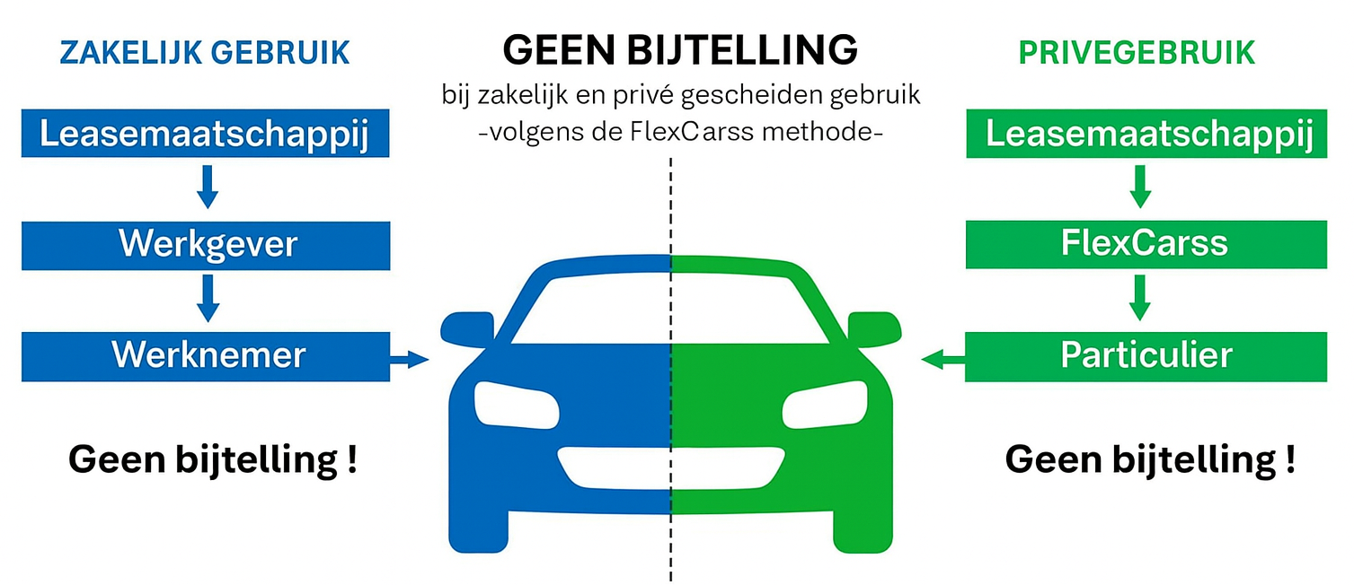 FlexCarss maakt RIJDEN ZONDER BIJTELLING mogelijk, voor een bedrag gelijk aan 6% van de cataloguswaarde van de auto!
